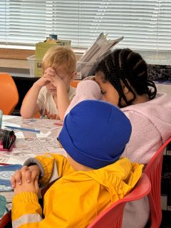 During Cougar Family Groups, a fifth grade student proactively stepped in to help a kindergartner find and read the Scripture.
