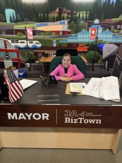 Mila was chosen as Mayor for McAlder Campus’s BizTown. She spoke confidently in front of her peers, helped keep the town running smoothly, and showed strong leadership every step of the way. BizTown, a program by Junior Achievement, is a hands-on educational simulation where fifth grade students operate a mock city, manage businesses, and learn real-world financial and career skills.